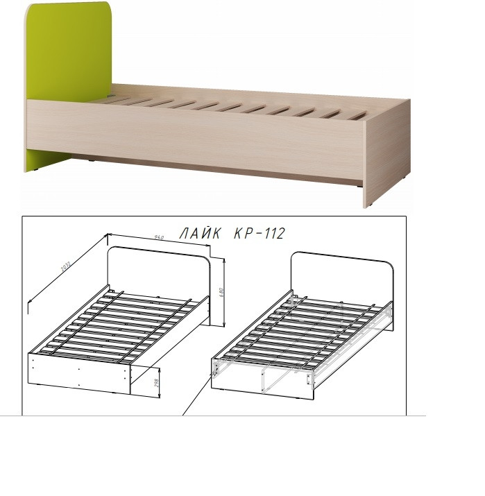 • Кровать: Ширина 1832 мм x Высота 650 мм x Глубина 850 мм. Спальное Место 1800*800 мм.