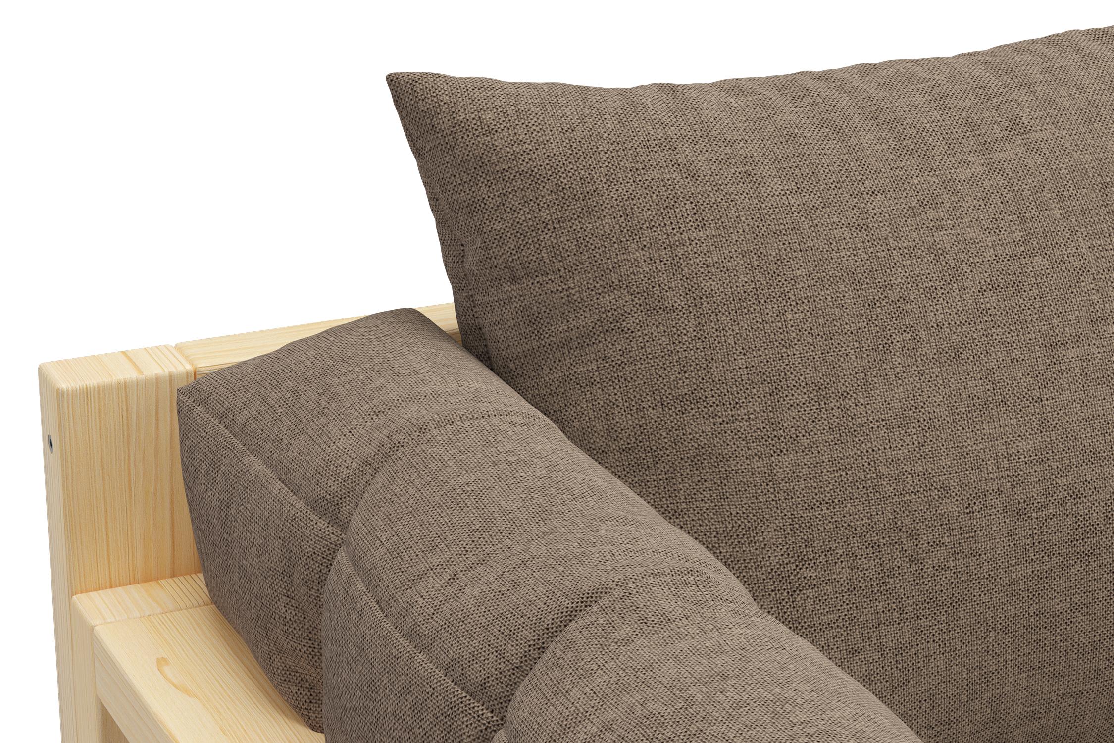 Максимальная нагрузка — 220 кг. Ширина деревянной спинки 130 см. Приспинные подушки, представленные на фото, входят в комплект. Декоративные приобретаются отдельно. Диван продается без лакокрасочного покрытия, под самостоятельную покраску. Высота сиденья без матраса - 31 см, с матрасом 46 см.