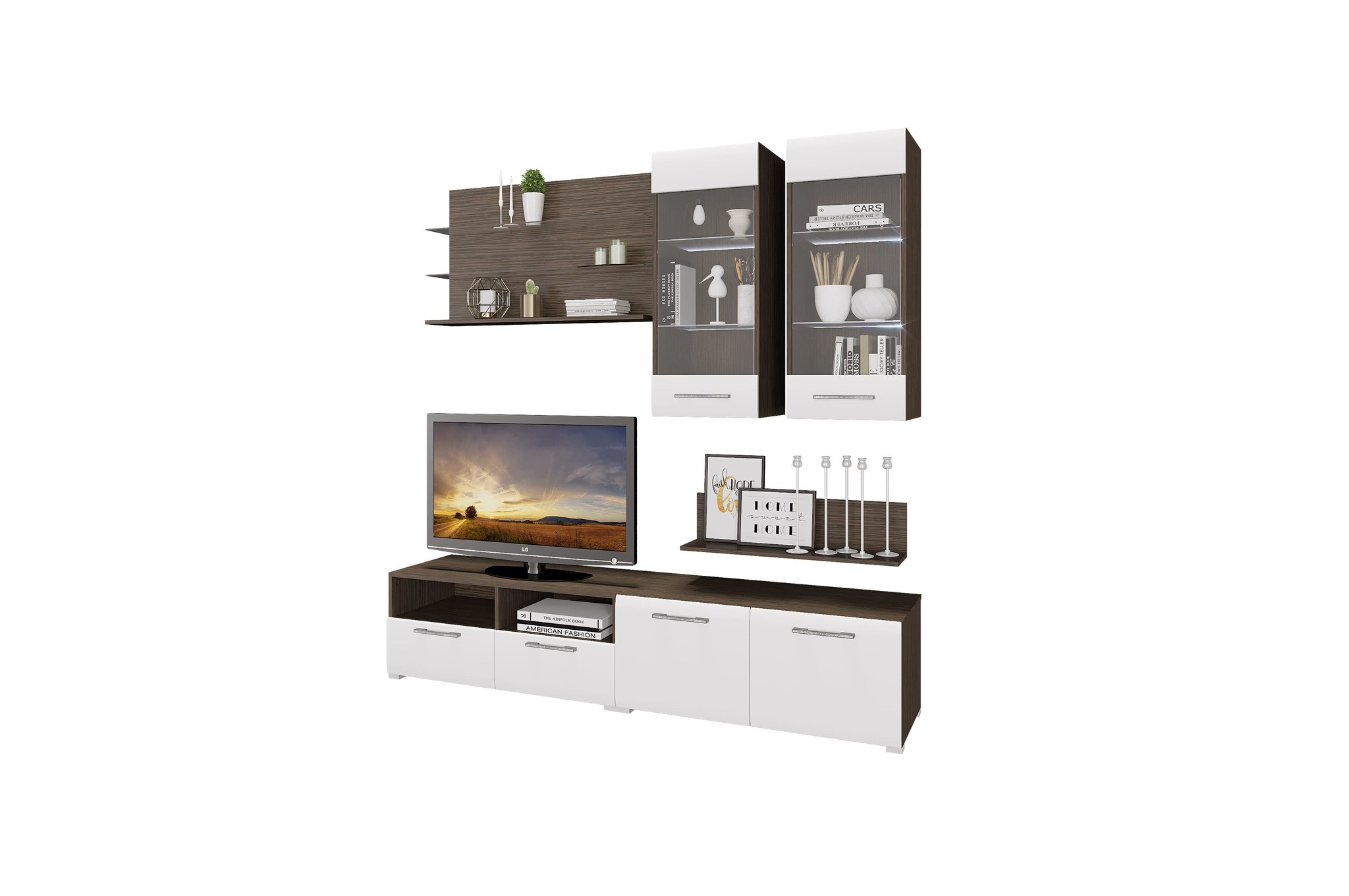 Гостиная Ницца поможет правильно организовать ваше жилое пространство, вдохнуть новую жизнь в интерьер. К данной гостиной вы можете приобрести спальный гарнитур Ницца. Ницца-3 -современная и стильная мебель, которая поможет правильно организовать любое пространство в вашей квартире.Включает в себя: две витрины с полками, тумбу под ТВ с открытыми полками под аппаратуру, двумя выдвижными ящиками и двумя закрытыми шкафчиками, а так же открытые полки для книг, сувениров и предметов декора. На глянцевых фасадах горизонтальная фрезеровка. Стенка произвоится только в одном исполнении.
