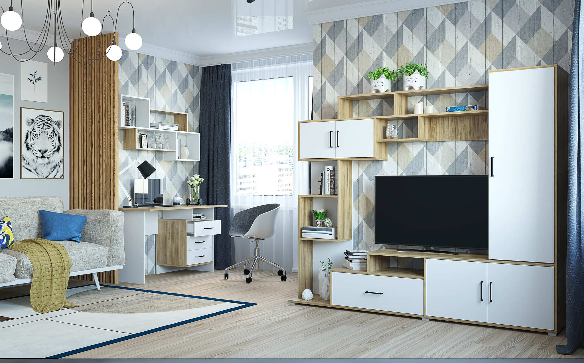 Пекин - Мини-стенка для большого телевизора с удобными полками и нишами.