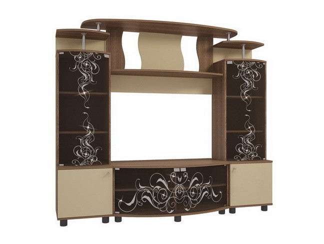 В Вашей гостиной есть место для танцев? Нет? Стенка «Зефир» позволит Вам станцевать даже вальс. В ней есть 4 гнутые витрины с элегантным рисункам и сверкающими кристаллами, 2 шкафа с полками, встроенная ТВ-тумба и полки для милых сердцу вещей. Все дверцы из стекла открываются одним нажатием. Со стенкой «Зефир» больше места для веселья и друзей!
