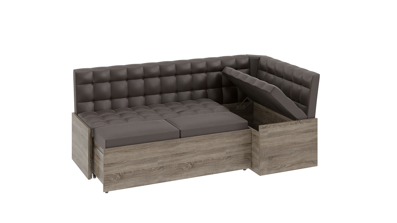 Скамья угловая со спальным местом «Форест» (Дуб Сонома трюфель/Кожзам коричневый
