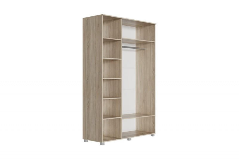 Особенности шкафа: Материал корпуса - ЛДСП 16 мм., материал фасада - МДФ 16 мм. Ручки - кнопка К-23 Серый антик-серый. В комплект входит металлическая штанга. Конструкции корпуса собираются с помощью эксцентриковых стяжек и евровинтов. Шкаф собирается только в единственном исполнении, центральная створка открывается рукой после открытия правой створки.