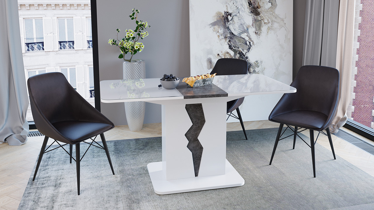 —Стол Раздвижной «Шеффилд» исп. 1 Белый Глянец/Камень/ Д-1100/1417 x Ш- 701 мм x В-752 мм